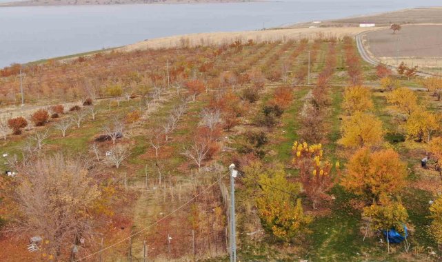 Van'da sonbaharın etkisiyle sarı tonlara bürünen tarlalar ve meyve ağaçları adeta kartpostallık manzaralar ortaya çıkarıyor.