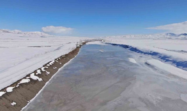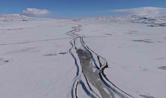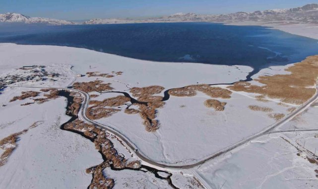 Van'ın İpekyolu ilçesinde karla kaplı dağlar ve ile Erçek Gölü'ne dökülen dereler kartpostallık görüntüler oluşturdu.