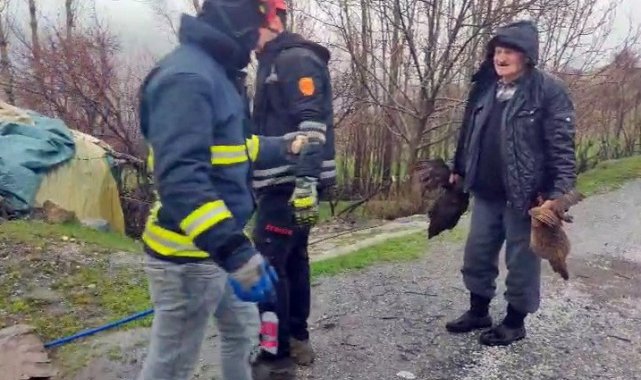 Edinilen bilgilere göre olay, Sugeldi Mahallesi'nde yaşandı. Yapının çökmesinin ardından durum 112 Acil Çağrı Merkezi'ne bildirildi. İhbar üzerine bölgeye sevk edilen itfaiye ekipleri, kısa sürede olay yerine ulaşarak çalışma başlattı. Ekiplerin müdahalesi sonucu göçük altında kalan tavuk ve horozlar sağ olarak kurtarıldı.