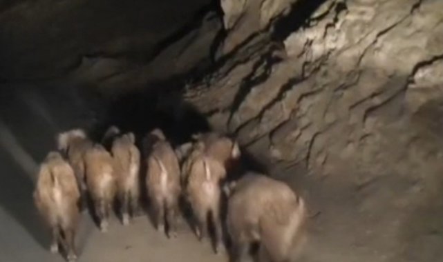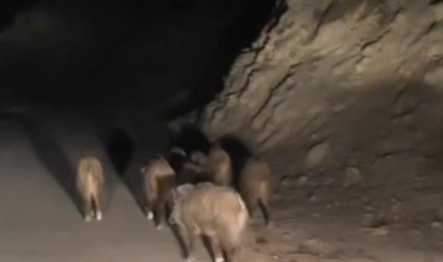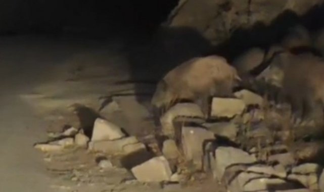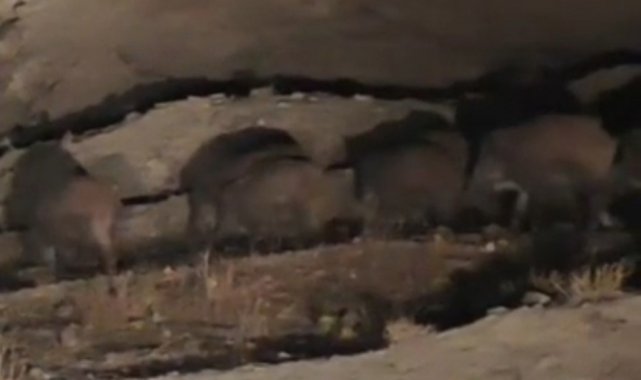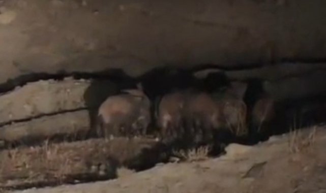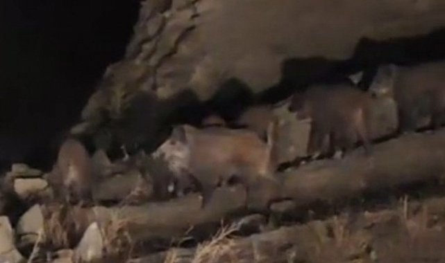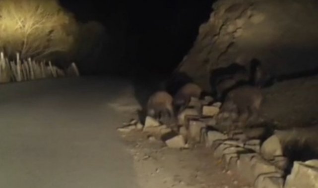 Başkale ilçesine 50 kilometre uzaklıkta bulunan İran sınırındaki kırsal Esenyamaç Mahallesi'ne akşam saatlerinde yaban domuzu sürüsü indi. Mahallede ikamet eden Mustafa Özdemir, yolun kenarında yiyecek arayan sürüyü cep telefonu kamerasıyla görüntüledi. Yaklaşık 10 domuzun bulunduğu sürü, yolun karşısına geçtikten sonra gözden kayboldu.