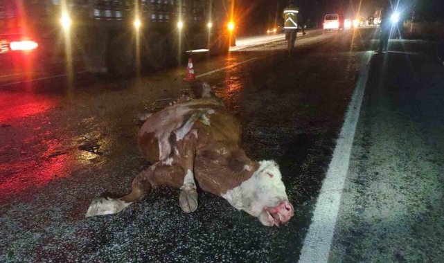Jandarma ekipleri kaza yerinde güvenlik önlemleri alırken, telef olan inek ve kazaya karışan araçlar yoldan kaldırıldı. Karayolunda bir süre tek şeritten sağlanan trafik, ekiplerin çalışmasının ardından normale döndü.