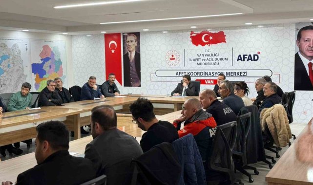 Van AFAD İl Müdürlüğü Afet Koordinasyon Merkezi'nde düzenlenen toplantı, Vali Yardımcısı Önder Koç'un başkanlığında yapıldı. Toplantıya AFAD İl Müdürlüğü, İl Emniyet Müdürlüğü, İl Jandarma Komutanlığı, Karayolları, İl Sağlık Müdürlüğü, Aile ve Sosyal Hizmetler İl Müdürlüğü, Kızılay, Tarım ve Orman İl Müdürlüğü, DSİ 17. Bölge Müdürlüğü ve ilgili kurumların temsilcileri katıldı. Toplantıda, devam eden kar yağışı ve olumsuz hava şartlarının ulaşım, enerji, haberleşme ve günlük yaşam üzerindeki etkileri ele alınarak sahada yürütülen çalışmalar ve mevcut durum değerlendirildi.
