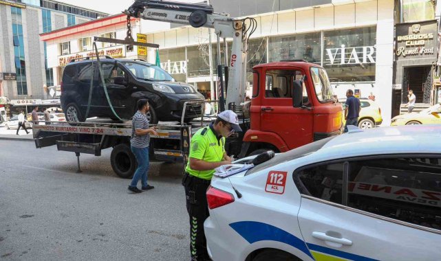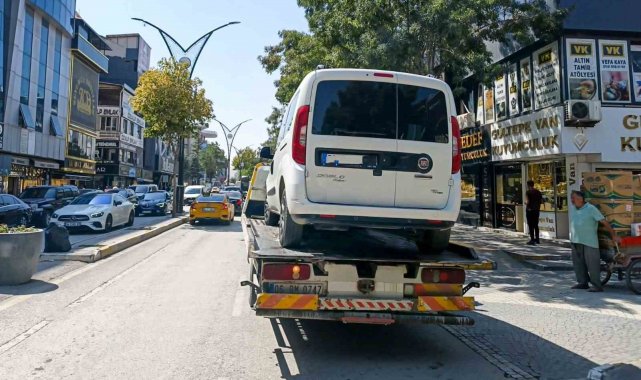 Van'da otobüs durakları, engelli rampaları ve yaya geçitlerinde park edilen araçlar cezai işlem uygulandıktan sonra çekici vasıtasıyla kaldırılıyor.