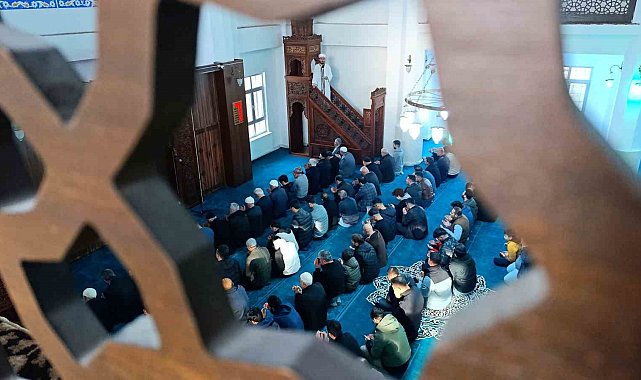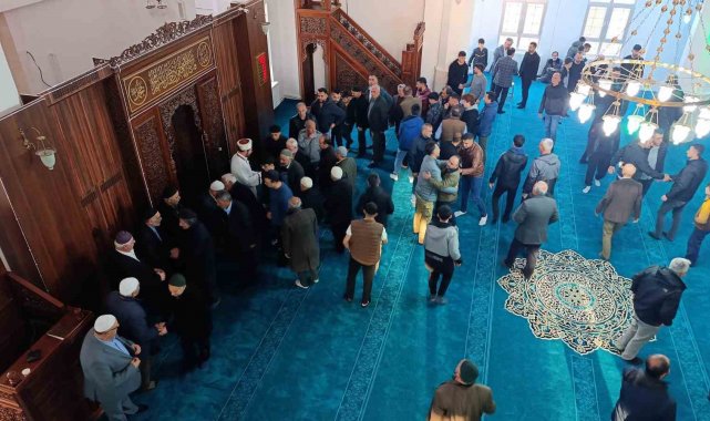 Hutbeden sonra saf tutan cami cemaati birbirleriyle salavatlar eşliğinde kucaklaşarak bayramlaştı.