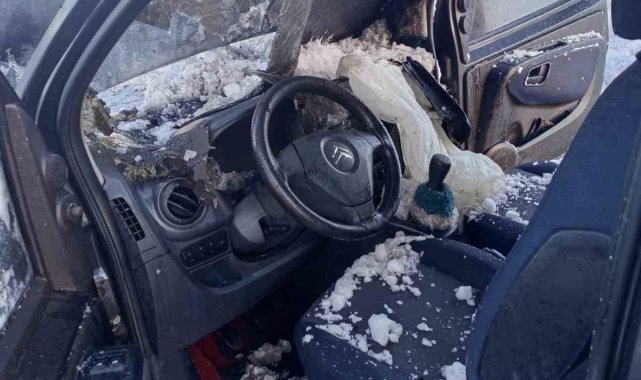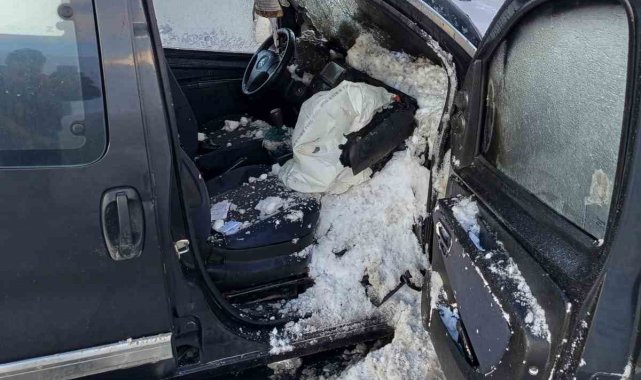 Van'ın Çaldıran ilçesinde seyir halindeyken yanmaya başlayan kapalı kasa kamyonet, itfaiye ekipleri tarafından söndürüldü.