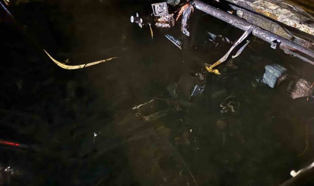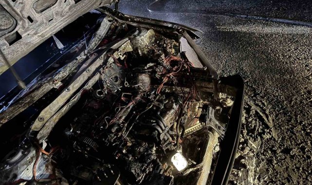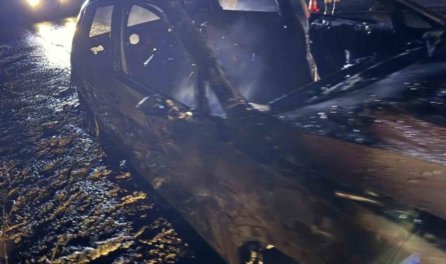 Van'da seyir halindeyken alev alan otomobilden geriye hurda yığını kaldı.