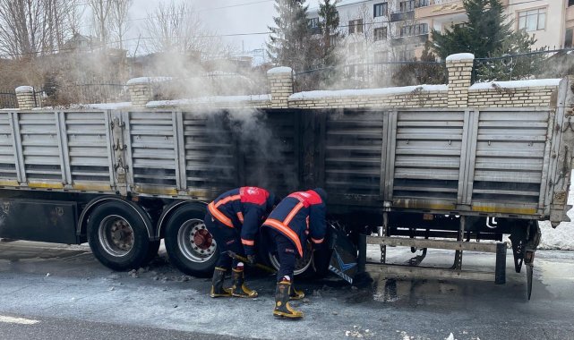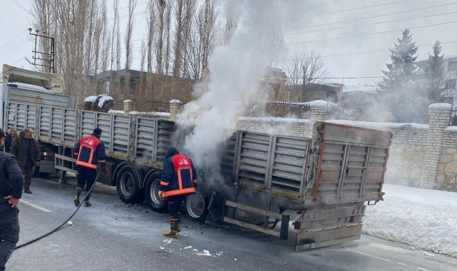 Van'da seyir halindeki tırın lastikleri yandı