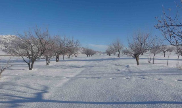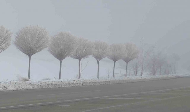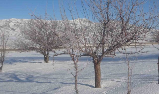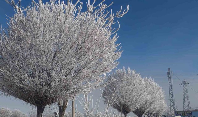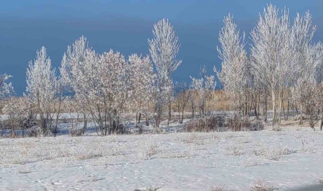 Van'da dondurucu soğuklar, tabiatı adeta beyaz bir örtüyle süslerken, gece hava sıcaklığının gece sıfırın altında düşmesiyle ağaçlar kırağı tuttu.