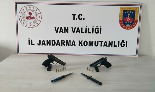 İl Jandarma Komutanlığı Kaçakçılık ve Organize Suçlarla Mücadele Şube Müdürlüğü tarafından Erciş ilçesi Çelebibağı Mahallesi'nde ikamet eden M.K. (39) isimli şahsa ait ev ve eklentilerinde arama yapıldığı belirtilen açıklamada, "Yürütülen aramada ise 1 adet berette marka 9 mm ruhsatsız tabanca, 1 adet 7.65 mm ruhsatsız tabanca, 2 adet tabanca şarjörü, 3 adet 7.65 mm fişek, 5) adet 9 mm fişek ve 2 adet bıçak ele geçirilerek muhafaza altına alındı. Şüpheli M.K. (39) isimli şahıs hakkında 6136 S.K. kanuna göre adli işlemler başlatılarak gözaltına alınmıştır" ifadeleri kullanıldı.