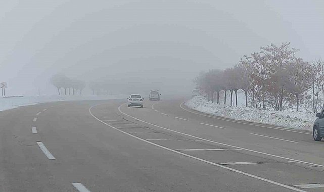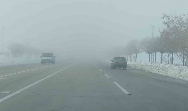 Van-Özalp kara yolunda sabah saatlerinde etkili olan yoğun sis, görüş mesafesini 30 metreye kadar düşürerek sürücülere zor anlar yaşattı.
