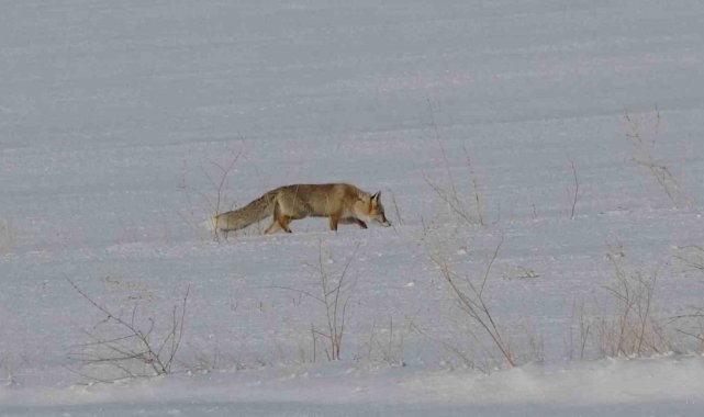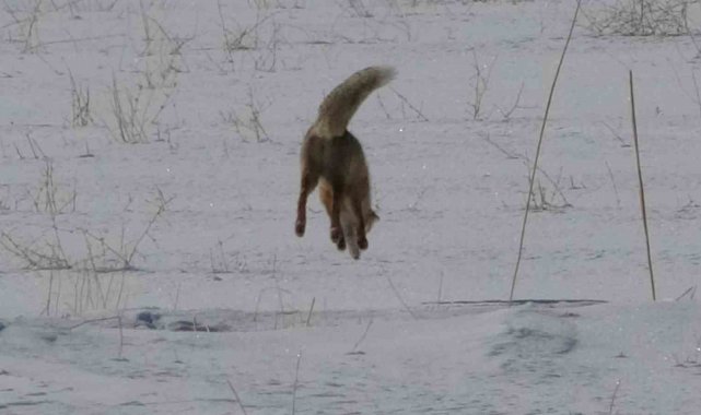 Van'da etkili olan yoğun kar yağışı, doğada ilginç ve dikkat çekici anlara sahne oldu. Kırsal alanlarda yiyecek bulmakta zorlanan tilkilerin karla kaplı arazideki fare avı belgeselleri aratmıyor.