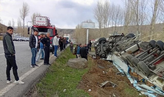 Van'ın Muradiye ilçesinde tırın devrilmesi sonucu meydana gelen trafik kazasında 1 kişi yaralandı.
