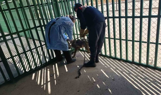 Van'ın Muradiye ilçesinde tasma takılarak zincirle evin önüne bağlanan kurt, yürütülen çalışmalar sonucunda kurtarıldı.