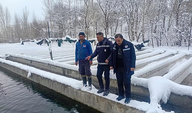 Van'da kar ve dondurucu soğuklara rağmen kent genelindeki alabalık üretim tesisleri denetlenirken, teknik ekipler üreticilere yerinde eğitim vererek sürdürülebilir ve kaliteli üretimi destekledi.