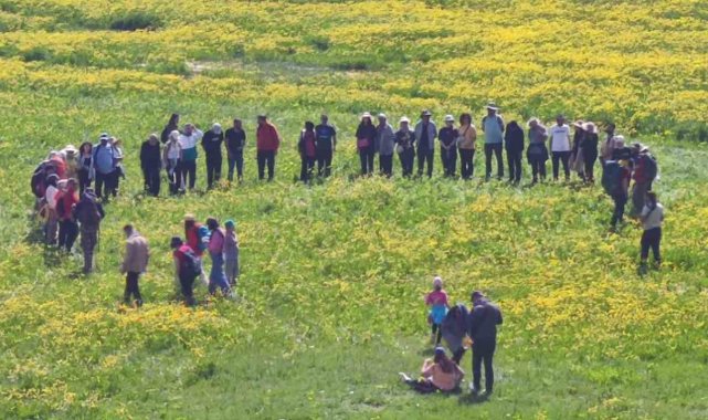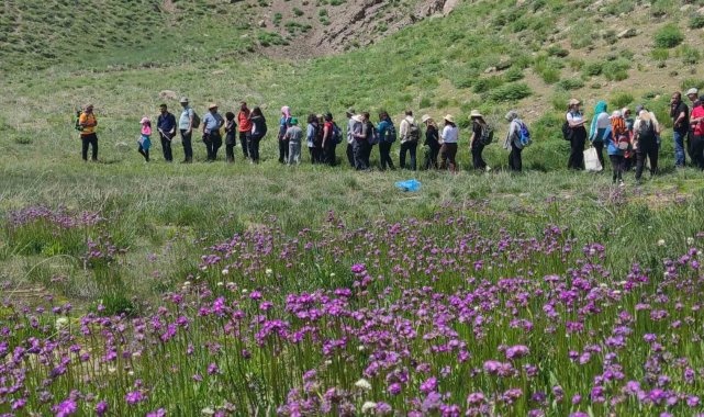 Vadi Doğa Sporları Kulübü öncülüğünde yaklaşık 100 doğasever, araçlarla Keşiş Gölü'ne geldi. Burada kahvaltı yapan grup, Vadi Doğa Sporları Kulübü Başkanı Ömer Demez öncülüğünde yaklaşık 2 kilometrelik kanyon, yaklaşık 45 dakikalık yürüyüş sonrası sarı ve mor çiçeklerin yer aldığı ovaya indi. Erek Dağı ile Keşiş Gölü arasındaki kanyonu yıllardır ziyaret ettiklerini aktaran Vadi Doğa Sporları Kulübü Başkanı Ömer Demez, "Kanyondan çıktıktan sonra çiçek bahçesine gideceğiz. Sarı çiçekler bizi karşılayacak. Hemen önümüzde sodalı su kaynağı var. İnşallah onunda suyundan tatmış olacağız. Yaklaşık 2 kilometre uzunluğundaki kanyona biz yıllardır geliyoruz. Dediğim gibi gruplar genelde burayı bilmezler. Sahip çıkmak lazım. Tanıtalım, gezelim, gezdirelim ama gezerken de doğayı koruyalım. Genelde insanlarımız doğaya çöp bırakıyor. Biz bunu sıklıkla yaşıyoruz. Lütfen doğayı temiz tutalım" dedi.