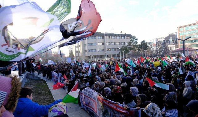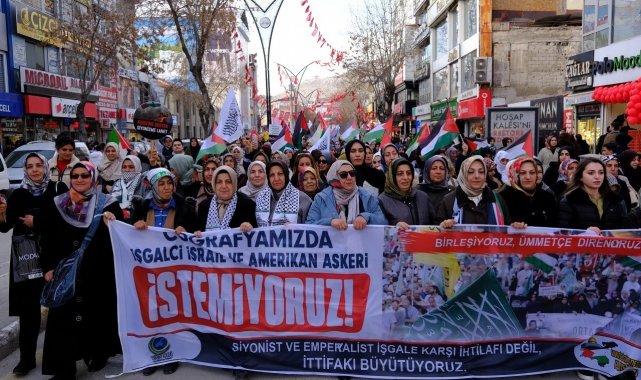 Van Filistin'e Destek Platformu ve Van Sivil Dayanışma İnisiyatifi öncülüğünde Beşyol Meydanı'nda toplanan binlerce vatandaş, Kent Meydanı'na kadar yürüdü. Burada Kur'an-ı Kerim tilavetiyle başlayan basın açıklamasını Van Filistin'e Destek Platformu Dönem Sözcüsü Ahmet Faruk Çevik okudu. Çevik, "Ümmet coğrafyası ateş çemberinde, Siyonist İsrail ve işbirlikçisi ABD bölgemizi yakıp yıkmaya devam ediyor. Çocuklar, kadınlar ve masumlar gözlerimizin önünde her gün katlediliyor. Bizlere evlerimizde oturmak yakışmaz, işte bugün zalime karşı mazlum kardeşlerimizin yanında olduğumuzu haykırmak ve tüm dünyada bu zalimleri lanetlemek ve zulmün durdurulmasını da bizleri yönetenlerden istemek için bir araya geldik. Bizler, bölgemizde yürütülen kirli senaryoları, zulmü ve katliamları lanetliyoruz. Bölge halklarının iradesini yok sayan, sınırları kanla yeniden çizmeyi hedefleyen hiçbir askeri girişimi, işgali ya da saldırıyı kabul etmiyoruz. Kendi topraklarımızda hem işgalci İsrail'i hem de bölgeyi kaos bataklığına çeviren Amerikan askeri varlığını reddediyoruz" dedi.