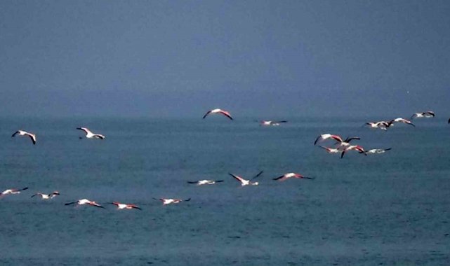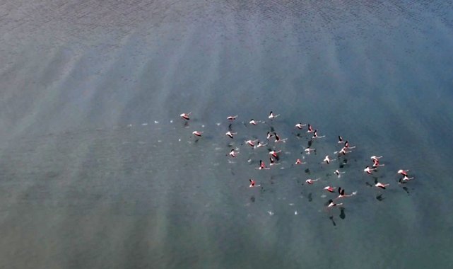 Van Gölü havzasının göçmen misafirleri flamingolar, hava sıcaklığının mevsim normallerinin üzerinde seyrettiği bölgede konaklama sürelerini uzattı.
