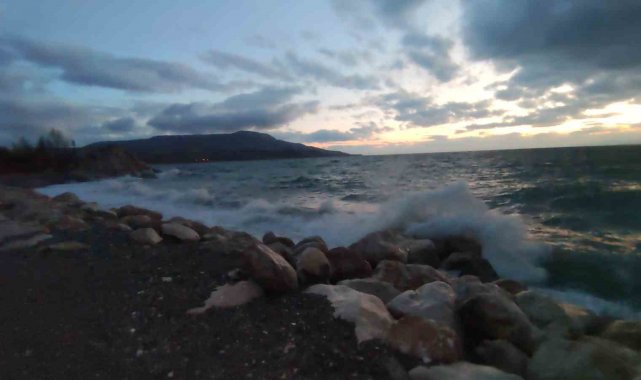 Van'da akşam saatlerinde başlayan ve etkisini giderek artıran fırtına, Van Gölü'nde büyük dalgaların oluşmasına yol açtı.
