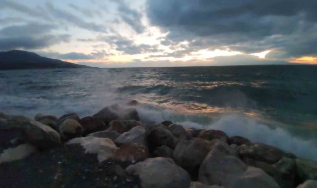 Van Gölü'nde fırtına: Dalgalar kıyı şeridini vurdu