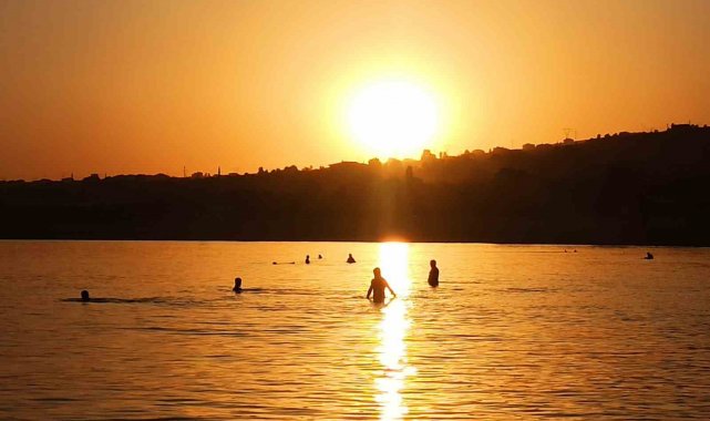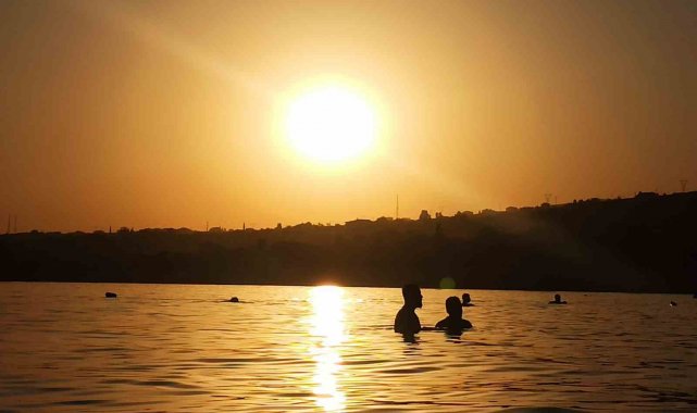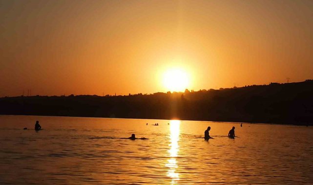 Bitlis'in Ahlat ilçesinde vatandaşlar, gün batımında Van Gölü'nde yüzmenin keyfini çıkarıyor. İlçede özellikle Ahlat Su Sporları Merkezi ile Adilcevaz yolu üzerinde bulunan sahiller, yaz aylarında serinlemek isteyenlerin uğrak noktası oluyor.
