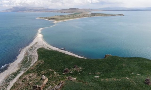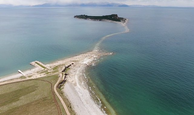 Van'da kuraklık ve iklim değişikliğiyle birlikte su seviyesi düşen Van Gölü'nde, Çarpanak Adası'na ulaşımın sağlanması için yapılan 1 kilometrelik antik yolun büyük bölümü ortaya çıktı.