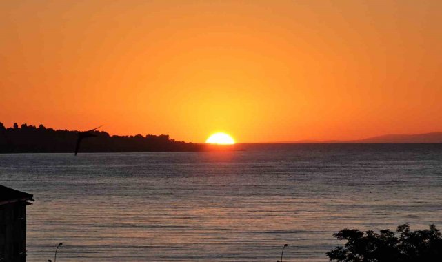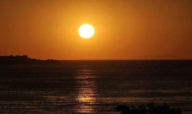 Bitlis'in Tatvan ilçesinde Van Gölü üzerinde sabah saatlerinde doğan güneş, görenleri mest etti. Gölün tam ortasından yükseliyormuş görüntüsü veren güneş, suyun üzerinde adeta altın rengi bir yol oluşturdu.