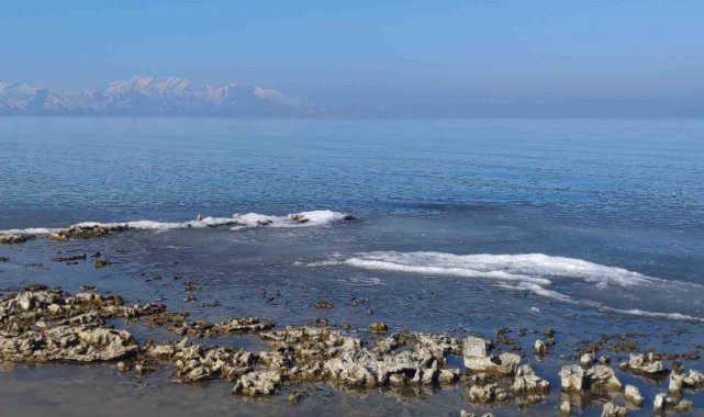 Van'da etkili olan soğuk hava hayatı olumsuz etkilerken aşırı soğuklar nedeniyle Van Gölü'nün sahil kısmının yüzeyi buz tuttu.