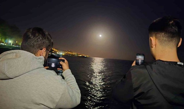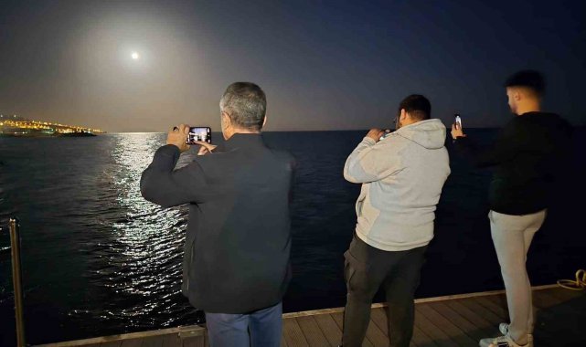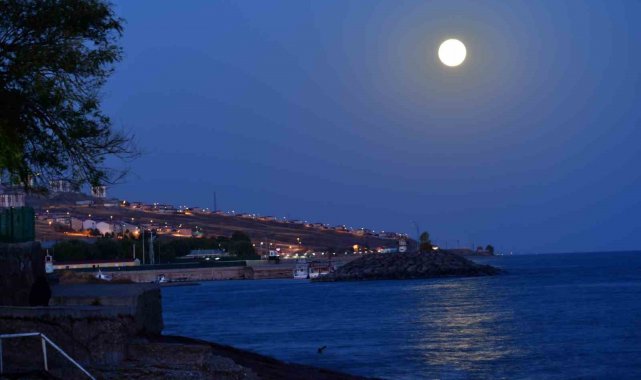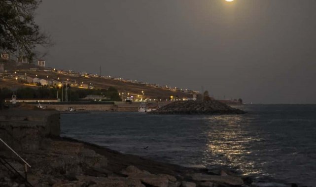 Van Gölü'nde dolunayın en güzel izlendiği yerlerden biri olan Ahlat iskelesi, bu muhteşem manzarayı görmek isteyen vatandaşlarla dolup taştı. Gökyüzünde tüm ihtişamıyla yükselen dolunay, Van Gölü'ne yansıyarak eşsiz bir ışık oyununa dönüştü. Ay ışığının göl yüzeyinde oluşturduğu yakamoz etkileyici bir atmosfer oluştururken, Ahlatlılar ve ilçeyi ziyaret eden fotoğraf tutkunları bu anı kaydetmek için cep telefonları ve fotoğraf makineleriyle görüntü aldı. Doğanın ve gökyüzünün eşsiz uyumuna sahne olan bu manzara, izleyenleri mest etti. Vatandaşlar, Ahlat iskelesinde uzun süre göl üzerindeki dolunayın yansımasını izleyerek keyifli anlar yaşadı.