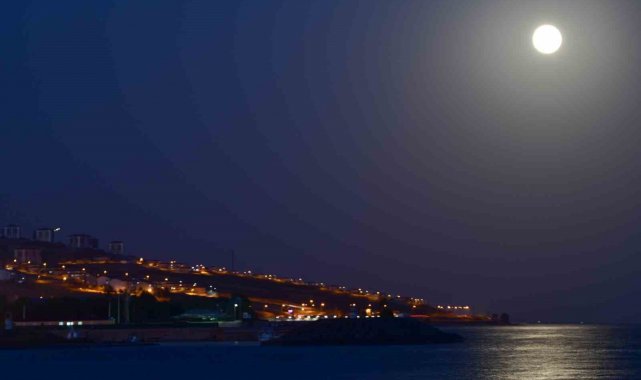 Van Gölü üzerinde dolunay görsel şölen sundu