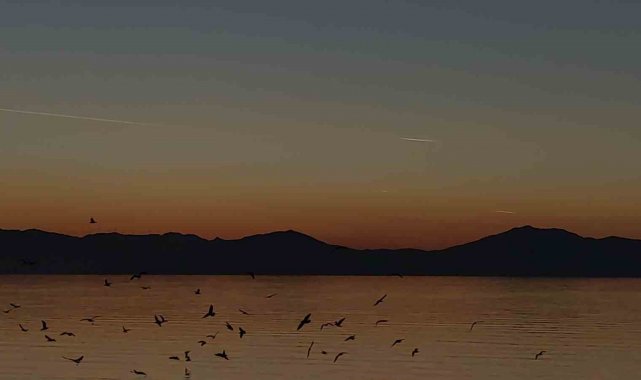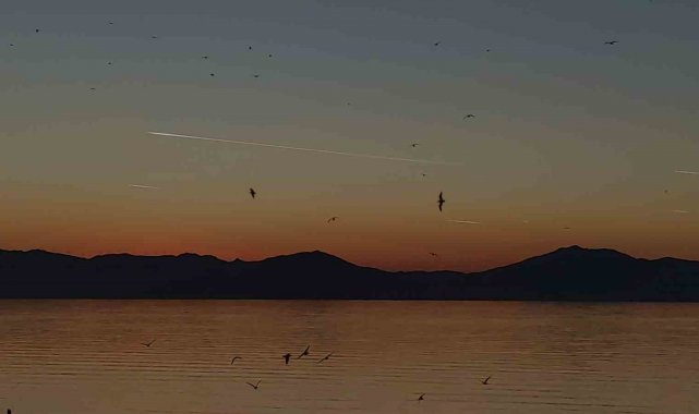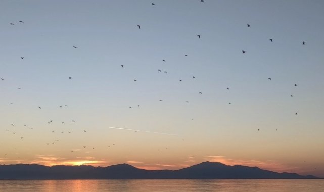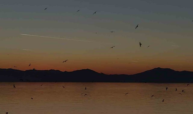 Van Gölü semaları, gün batımı saatlerinde yüzlerce kuştan oluşan sürünün gerçekleştirdiği adeta görsel bir şölenle izleyenleri büyüledi. Özellikle sığırcık kuşlarından oluştuğu sürünün, göl üzerinde bir araya gelerek sergilediği senkronize uçuş figürleri, vatandaşların büyük ilgisini çekti.