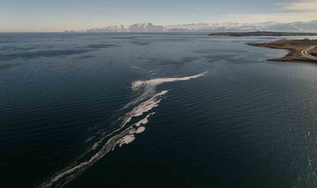 Alkali karaktere sahip olduğu için köpüklenmeye yatkın olan Van Gölü yüzeyinde oluşan kilometrelerce uzunluğundaki beyaz köpüklenme akademisyen ve fotoğraf sanatçısı Veysel Akşahin tarafından görüntülendi. Van Yüzüncü Yıl Üniversite (YYÜ) Su Ürünleri Fakültesi Öğretim Üyesi Dr. Mustafa Akkuş, rüzgârların yoğun olduğu bu dönemde rüzgârlarla beraber yüzey suları ile dip suları, dip sularının kıyıya yakın yerlerde yer değiştirdiğini belirtti. Gölün altındaki karbonatça zengin suyun yüzeye doğru hareket ettiğini ifade eden Akkuş, rüzgarın etkisiyle köpürmeler oluştuğunu söyledi. Akkuş, "Van Gölü 3 bin 712 kilometre karelik yüzey alanı ile beraber ülkemizin en büyük gölü ve sahip olmuş olduğu su kalite kriterleri ile özel bir ekosistem. Yani pH seviyesi 9.2'lerde, tuzluluk ise binde 21'lerde. pH seviyesinin yüksek oluşuyla beraber aynı zamanda dünyanın en büyük sodalı gölünü oluşturuyor. Alkali karaktere sahip olan Van Gölü'nün son günlerde Tatvan tarafında kıyıya yakın bölgelerinde köpüklenme olduğunu gösteren görüntüler görüyoruz. Yani adeta gölün yüzeyi kar yağmış gibi köpük öbeklerinden oluşuyor. Öncelikle alkali karakterdeki göller köpürmeye daha yatkın konumda bulunuyorlar. Özellikle rüzgârların yoğun olduğu bu dönemde rüzgârlarla beraber yüzey suları ile dip suları, dip suları kıyıya yakın yerlerde yer değiştiriyor. Yani alttaki karbonatça zengin su yüzeye doğru hareket ediyor. Yüzey daha planktonlarca yoğun, organik madde yüzeye geliyor ve Van Gölü'nün yüzeyinde biz köpürmeler olduğunu görüyoruz. Bu tip durumları hemen kirlilikle veya olumsuz bir durumla bağdaştırmak aslında doğru değil. Bu durum aslında Van Gölü'nün bize ne kadar özel bir ekosistem olduğunu gösteriyor. Alkali karakteriyle beraber Van Gölü adeta kıyıdaki insanlara görsel bir şölen oluşturuyor. Rüzgarla beraber dalgalar ortaya çıkıyor ve su köpürmeye başlıyor. Köpüren su ana akıntı hatlarıyla beraber hepsi birden bir alana toplanıyor ve akıntı yönünde harekete başlıyor. Bu elbette ki fotoğrafçılar ya da drone çekimi yapan insanlar için bulunmaz fırsatlardan birisi. İşte bu Van Gölü'nün ne kadar özel bir ekosistem olduğunun göstergelerinden birisi" dedi.