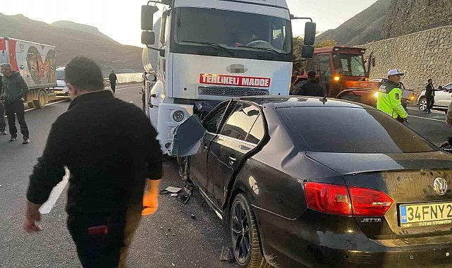 Van-Hakkari karayolunda otomobilin tankerle çarpıştığı kazada 3 kişi hayatını kaybetti, 4 kişi yaralandı.