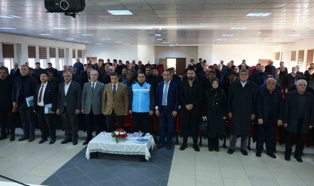 Erciş Kaymakamı ve Belediye Başkan Vekili Nuri Mehmetbeyoğlu başkanlığında kaymakamlık toplantı salonundan düzenlenen muhtarlar toplantısına VASKİ Genel Müdürü Ülker Cem Kaplan ve muhtarlar katıldı