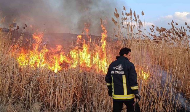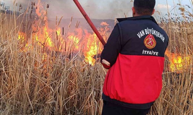 Van'ın Gevaş ilçesinde birçok yaban kuşunu barındıran sazlık alanda çıkan yangın itfaiye ekipleri tarafından söndürüldü.