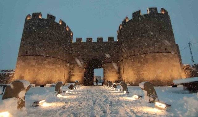 Van'da dün akşam saatlerinden itibaren etkili olan yoğun kar yağışı, kentin tarihi mekanlarını sessiz ve huzur verici bir güzelliğe bürüdü. Van Kalesi'ni güneyinde bulunan ve Mimar Sinan'ın bölgedeki en önemli eserlerinden biri olan Hüsrev Paşa Camii ile hemen yanı başındaki kadim Horhor Camii, beyaz örtüyle kaplanan silüetleriyle görenleri kendine hayran bırakıyor.