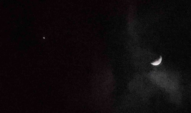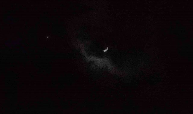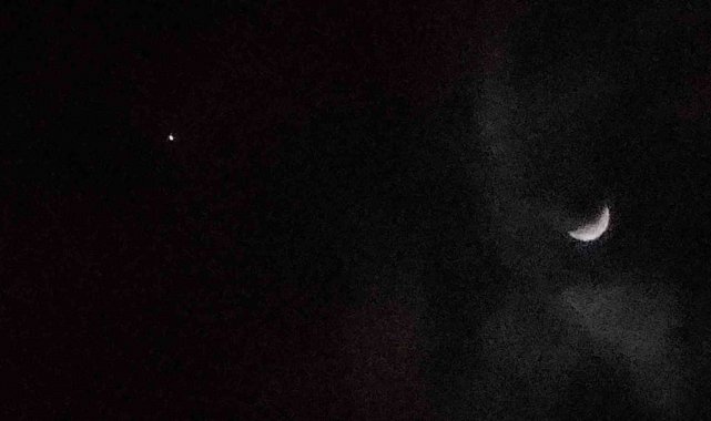 Van'da bulutlu gökyüzü, nadir görülen bir buluşmaya ev sahipliği yaptı. Ay'ın hilal hali ve hemen yanı başında parlayan Jüpiter, karanlığı bir tablo gibi süsledi.