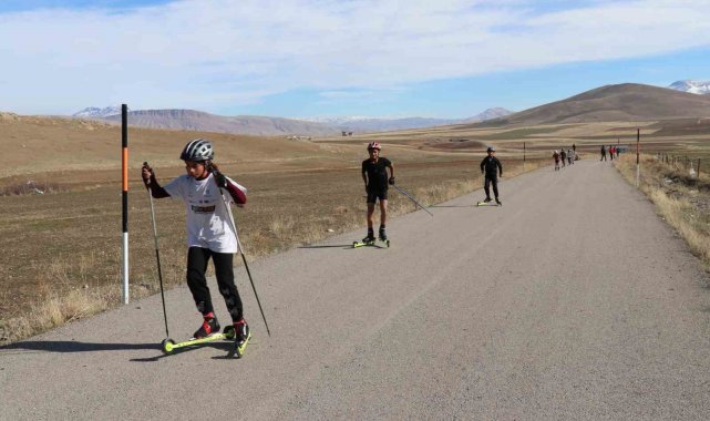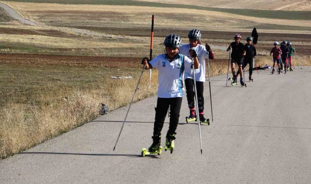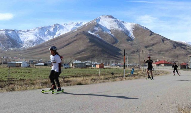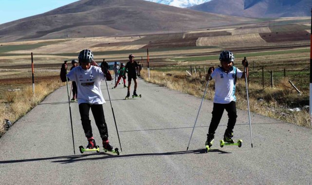Van'da elde ettikleri başarılarla göz dolduran kayaklı koşu milli takım sporcuları, asfalt yolda antrenman yaparak şampiyonalara hazırlanıyor.