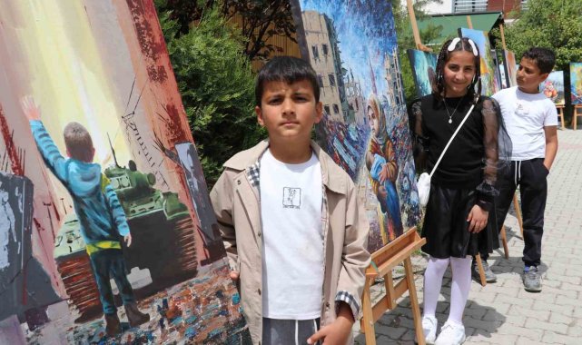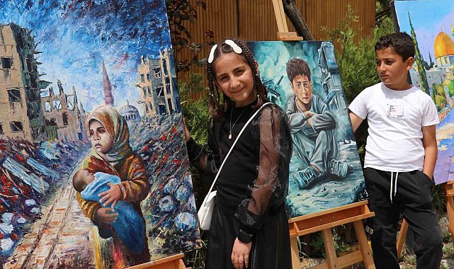 Öğrenciler ise yaptıkları eserlerde, savaş ortasında kalan Filistinli çocukların yaşadıklarını aktararak bir farkındalık oluşturmak ve orada yaşanan zulmün artık son bulmasını istediklerini söylediler.
