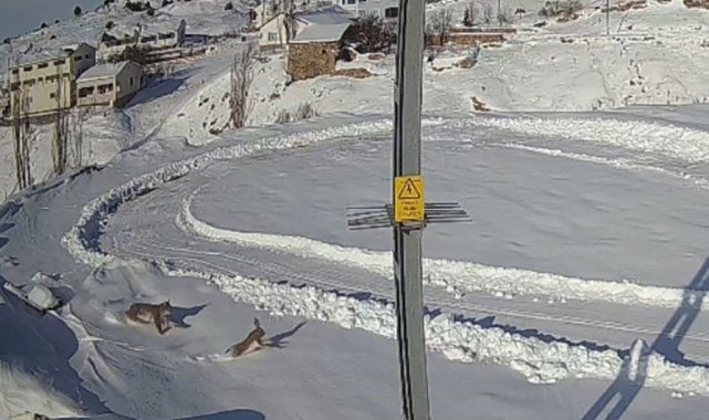 Sivas'ta bir köyde yaban tavşanını avlayan vaşağın bir gün sonra iki kurt tarafından kovalandığı anlar güvenlik kamerasına yansıdı. Belgeselleri aratmayan görüntülerde iki vaşak, kurtlardan kurtulmayı başardı.