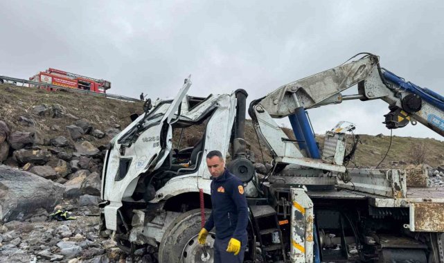 VASKİ'ye ait vinç kaza yaptı: 1 yaralı