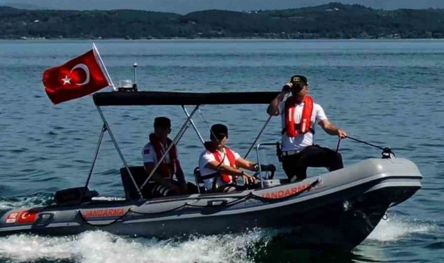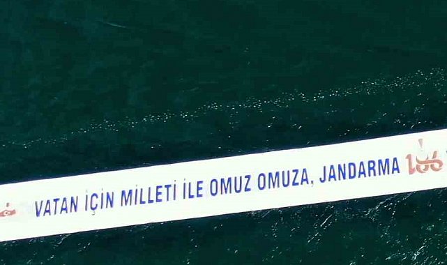 Jandarma Genel Komutanlığı'nın 186'ncı kuruluş yıl dönümü çerçevesinde Sakarya İl Jandarma Komutanlığı Sapanca Gölü üzerinde, "Vatan için milleti ile omuz omuza-jandarma 186 yaşında" yazılı pankart açtı.