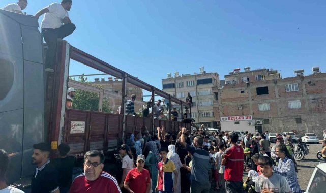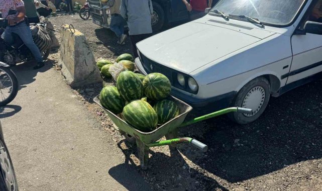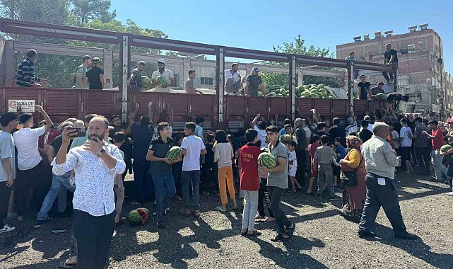 Şanlıurfa'da bir esnafın vatandaşa bedava dağıttığı 27 ton karpuz izdihama neden oldu.