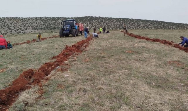 Çorum'un Alaca ilçesinde bağlı Büyük Keşlik Köyü'nde düzenlenen etkinlikle, yüzlerce çam fidanı toprakla buluştu.