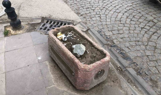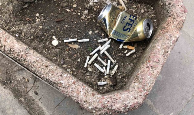 Eskişehir'de yere izmarit atılmasını yasaklayan karar sonrası, bazı vatandaşlar izmaritleri saksılara atmaya başladı.