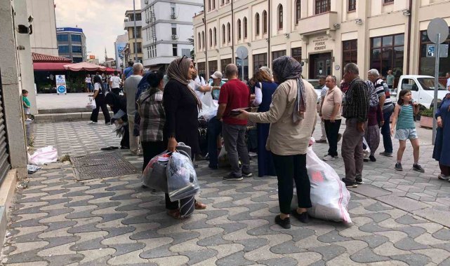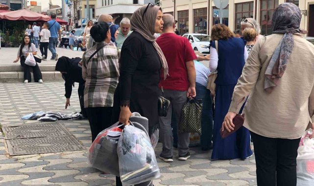 Vatandaşlar tişörtleri alabilmek için birbirleriyle yarıştı