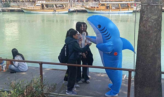 Manavgat'ın ana caddelerinde üzerinde köpek balığı kostümü giyerek dolaşan genç dikkatleri üzerinde topladı. Köpek balığı kostümüyle dolaşan genç, insanları eğlendirmek amacıyla kostüm giyerek sokaklarda dolaştığını, insanları eğlendirmenin kendisini mutlu ettiğini söyledi. Manavgat Irmak kenarına inerek ırmak kenarında oturan gençlerle şakalaşan Harun isimli genç, kendisiyle fotoğraf çektirmek isteyenlerin isteğini geri çevirmedi. Zaman zaman çalan müzik eşliğinde oynayan genç, elektrikçi olduğunu ve staj yaptığını belirterek "bugün insanları eğlendirmek, onlarla fotoğraf çektirip hoşça vakit geçirmelerini sağlamak amacıyla böyle bir işe koyuldum. Bunu da başardığıma inanıyorum" diye konuştu.