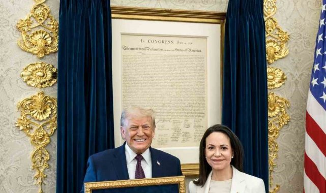 Venezuelalı muhalif lider Maria Corina Machado, Nobel Barış Ödülü madalyasını Beyaz Saray'da gerçekleştirdikleri toplantı sırasında ABD Başkanı Donald Trump'a takdim etti. Trump, "Karşılıklı saygının harika bir göstergesi" ifadelerini kullandı.