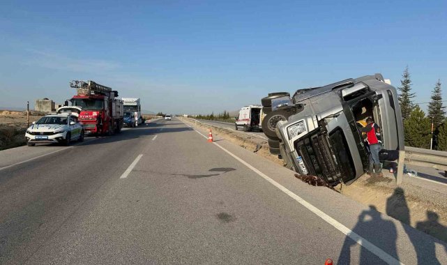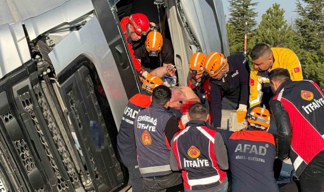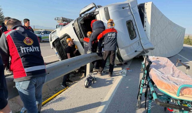 Afyonkarahisar'da Vestel'in beyaz eşya yüklü tırı kontrolden çıkarak devrildi. Kazada 1'i ağır 2 kişi yaralandı.