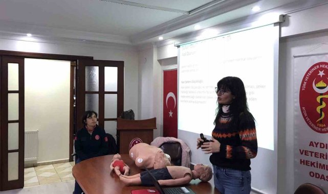 Aydın'da veteriner hekimlere yönelik düzenlenen ilk yardım güncelleme eğitiminde, sertifikalı veteriner hekimler acil sağlık uygulamalarına ilişkin bilgilerini tazeledi.