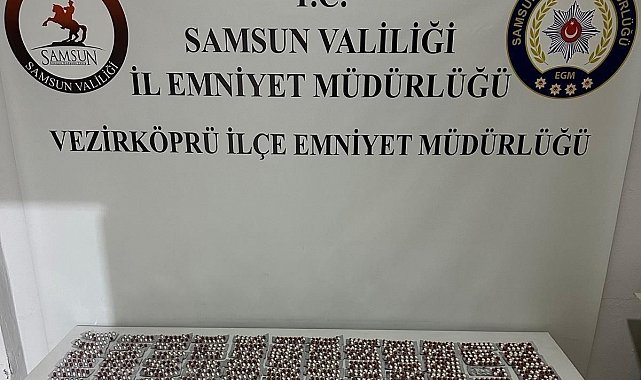 Samsun'un Vezirköprü ilçesinde bir araçta arama yapan polis bin 308 adet uyuşturucu hap ele geçirdi.